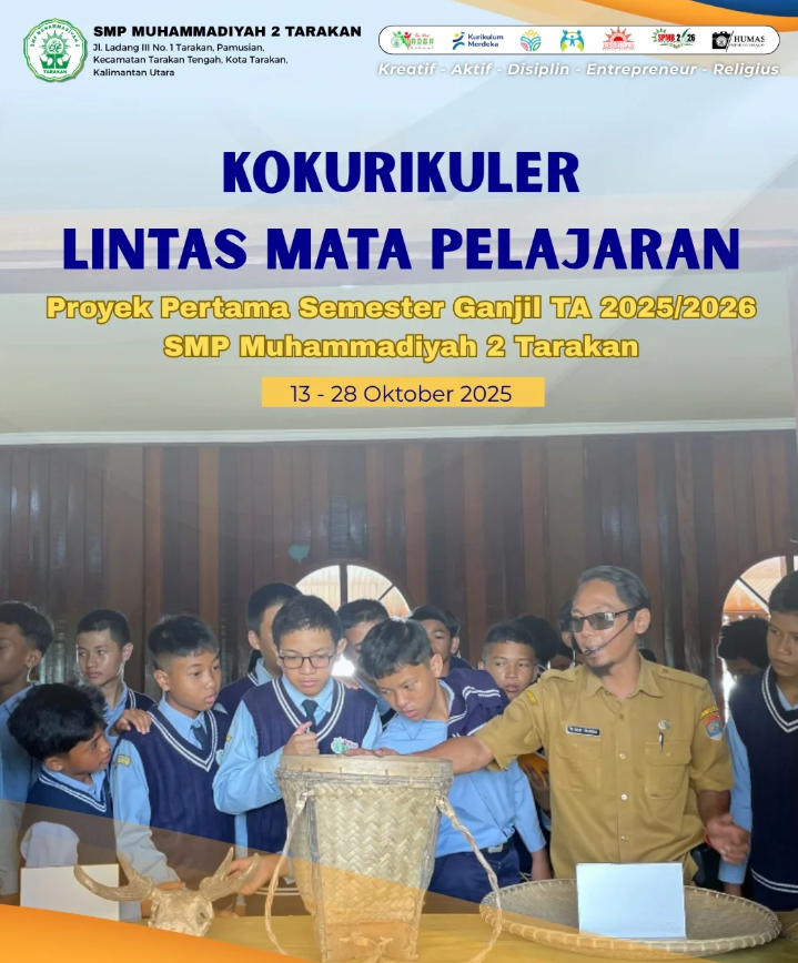 SMP Muhammadiyah 2 Tarakan (SMP Muda) kembali menunjukkan inovasi dalam proses pembelajaran dengan menyelenggarakan Kegiatan Kokurikuler Lintas Mata Pelajaran. Kegiatan ini merupakan proyek pertama untuk semester ganjil Tahun Ajaran 2025/2026, berlangsung dari tanggal 13 hingga 28 Oktober 2025.