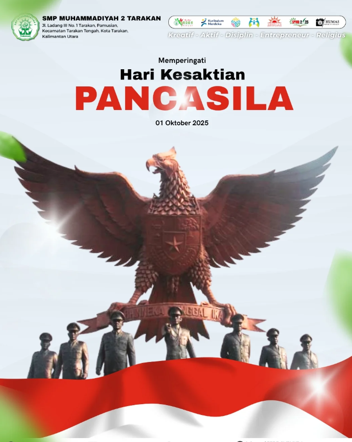 SMP Muhammadiyah 2 Tarakan (SMP Muda) turut memperingati Hari Kesaktian Pancasila pada tanggal 1 Oktober 2025. Kegiatan ini dilaksanakan sebagai bentuk komitmen sekolah dalam menanamkan nilai-nilai luhur Pancasila kepada seluruh siswa, menegaskan peran Pancasila sebagai pemersatu bangsa Indonesia yang beragam.